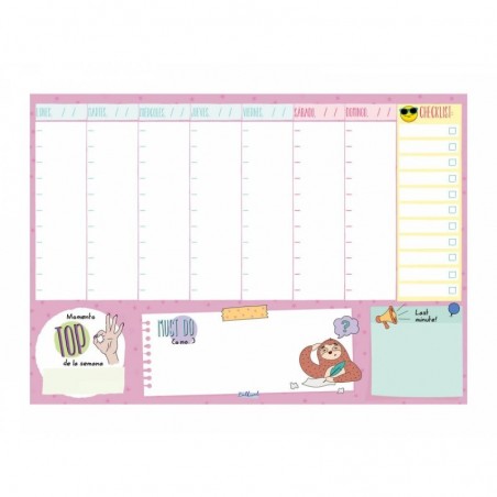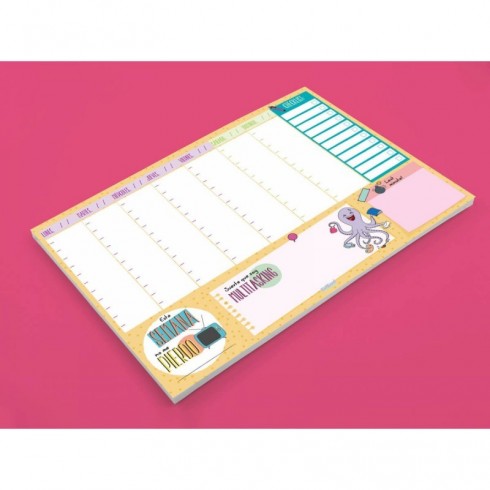 Planificador semanal TALKUAL para chicas naturales, diferentes y únicas como tú que necesitan planificar sus semanas caóticas de estudio y/o trabajo. Encolado en la parte inferior para arrancar fácilmente. En el interior encontrarás cuatro diseños de página distintos. Papel de calidad de 90 g/m2. En este planificador podrás asignar las tareas y compromisos de la semana. También dispondrás de dos espacios para aquellos asuntos que no tienen un día asignado y de una lista checklist. Ya no tendrás excusa para no planificarte o, al menos, te ayudará a ser un pelín más organizada ¡Cualquier ayuda es poca! Muéstrate #Talkual, #talkualsoy. Somos TALKUAL.