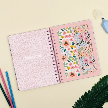 - Materiales: tapa dura con espiral doble metálica y papel ecológico