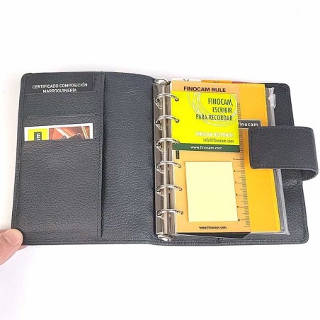 Agenda anillas Finocam . Cierre con broche.  6 taladros. Exterior: Piel Bovino / Interior: Piel Bovino / Forro: Textil.