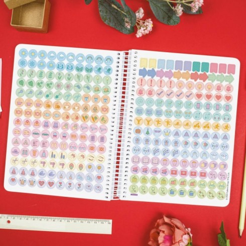 · Contenido: La anualidad de la agenda incluye la información relativa a: onomástica, festivos nacionales, cambios de estación, días mundiales e internacionales de interés, días señalados e inicios de los años nuevos chino, musulmán, ortodoxo y hebreo. La agenda dispone también de otros contenidos extra: datos personales, calendarios, planificación mensual en columnas de 2 años, fechas para recordar, horarios, objetivos personales, planificación mensual cuadriculada de 12 meses intercalada en la anualidad, proyectos, planes y escapadas, maleta, películas y series, libros, control de gastos, hojas de checklist, hojas de punteado tipo dotted, contactos y set de adhesivos temáticos.