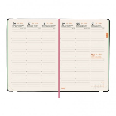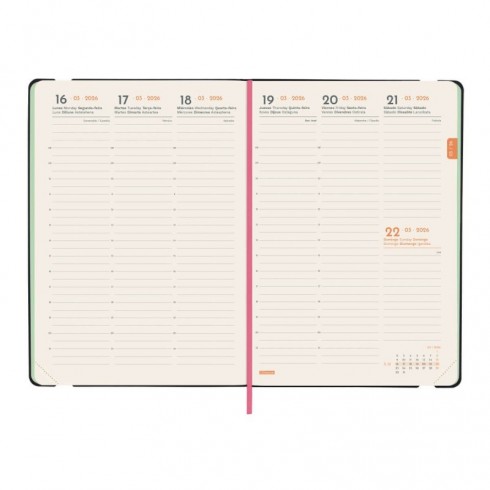 Agenda encuadernada de tapa blanda y flexible. Material de tacto suave y agradable.
