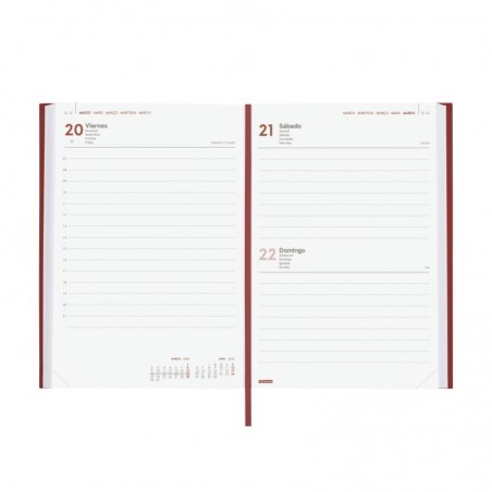 Agenda profesional encuadernada de estilo clásico y elegante. Tapa dura acolchada de polipiel. Buena apertura. Con cinta-punto. La anualidad contiene la información útil relativa a: onomástica, fases lunares, festivos nacionales, cambios de estación, cambios de hora e inicios del nuevo año chino, musulmán, ortodoxo y hebreo. La agenda incluye otros contenidos extra.