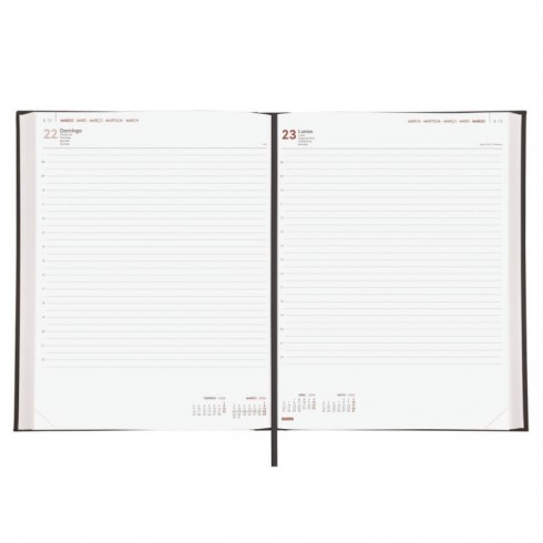 Agenda profesional encuadernada de estilo clásico y elegante. Tapa dura acolchada de polipiel.