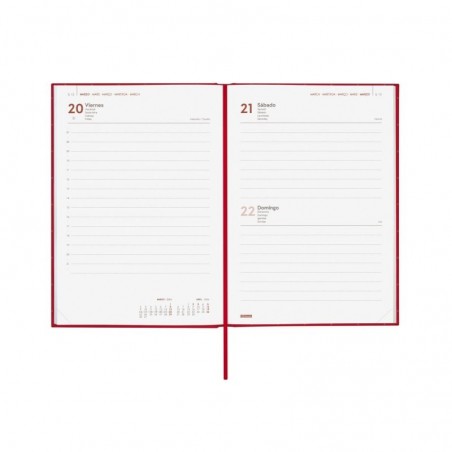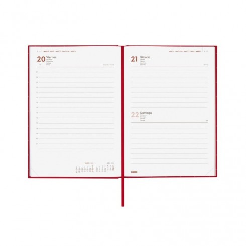Agenda profesional encuadernada de estilo moderno. Tapa dura de cartón forrado con peliculado mate antirayaduras.