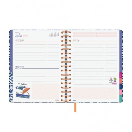 Agenda TALKUAL de espiral para chicas reales, únicas y genuinas como tú. La agenda es de tapa dura con detalles brillantes, goma elástica suave, bolsillo con fuelle en la contratapa y cinta-punto. Esta agenda tiene todo lo necesario para organizarse, porque mejor hacerlo, ¡que nos conocemos! ¿Qué es 'todo lo necesario para organizarse'?