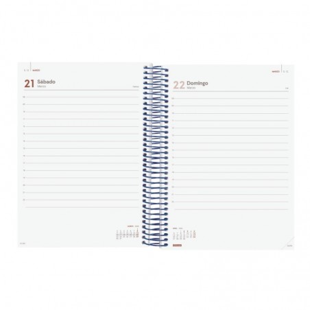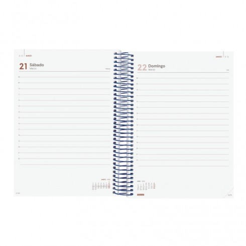 Agenda de espiral de estilo moderno. Con tapas de polipropileno y goma elástica. Ideal para uso personal y/o profesional. Con esquinas microperforadas para localizar rápidamente el día/semana en curso. La anualidad contiene la información útil relativa a: onomástica, festivos nacionales, cambios de estación, cambios de hora e inicios del nuevo año chino, musulmán, ortodoxo y hebreo. La agenda incluye otros contenidos extra.