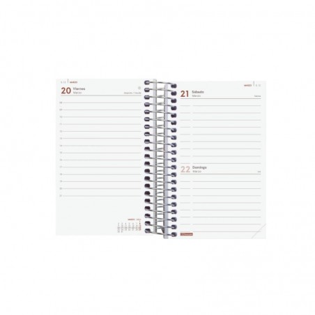 Agenda de espiral de estilo moderno. Con tapas de polipropileno y goma elástica. Formato ideal para llevar en el bolso.