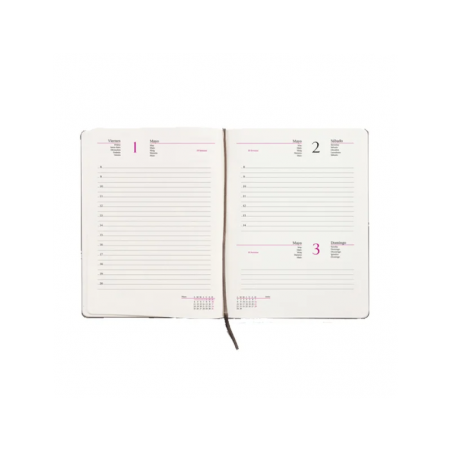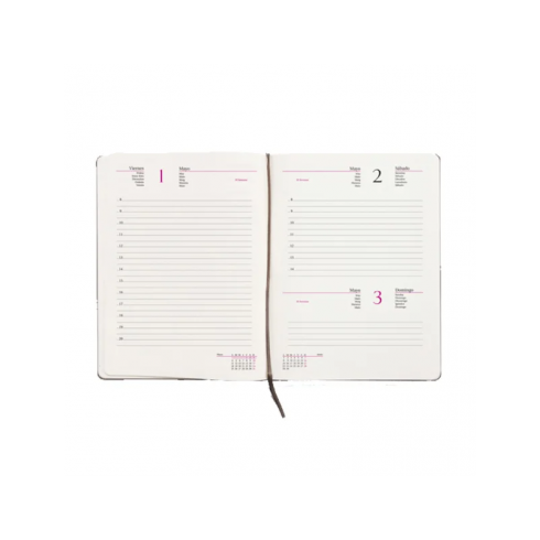 Agenda anual 2026, Encuadernada con cubierta PVC. Estampación en plata y guía interior de tela.336 Páginas en papel marfil de 70 g. Interior a dos tintas.