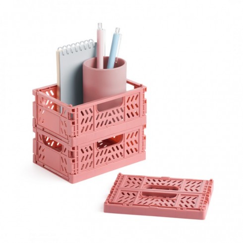 CAJA PLEGABLE Y APILABLE MONOCOLOR ROSA CORAL