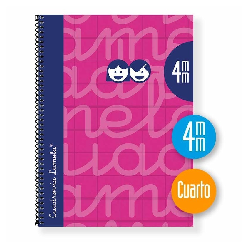 Bloc Lamela tamaño cuarto, 80 hojas, tapa forrada, cuadrícula de 4mm, color Rosa Fucsia.