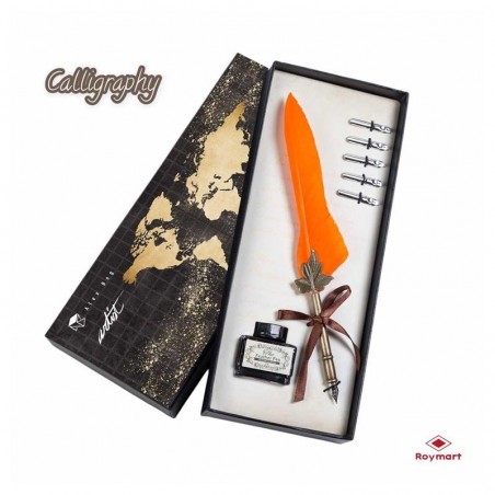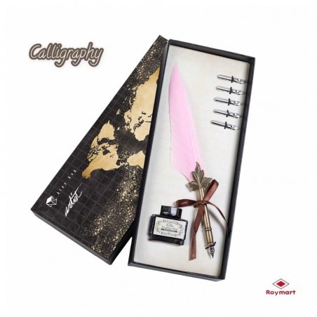 Set de pluma + 5 plumines + tintero .(6 colores)