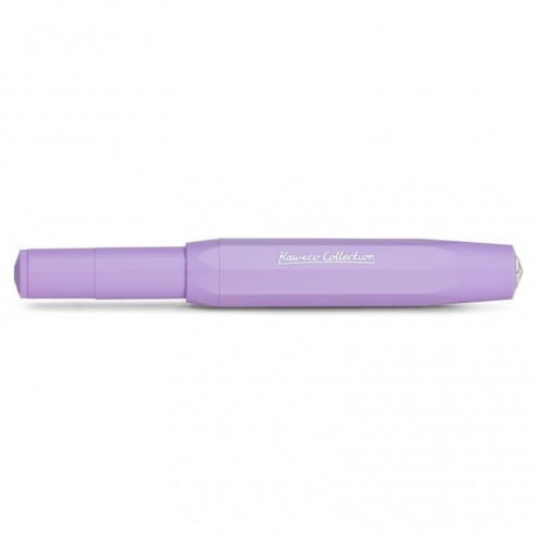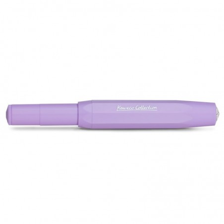 Pluma estilográfica Kaweco Sport Lavanda, un modelo "Kaweco Collection" de la gama Sport Classic. La Sport Lavanda es monocromática, con cuerpo, capuchón y boquilla de plástico del mismo color. Plumín de acero inoxidable. Tamaño de bolsillo. Largo cerrada: 10,5 cm. Largo posteada: 13 cm. Diámetro: 1,1 cm. Peso: 10 g. Incluye clip. Caja de cartón de color lavanda.