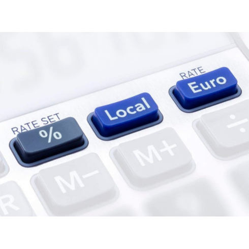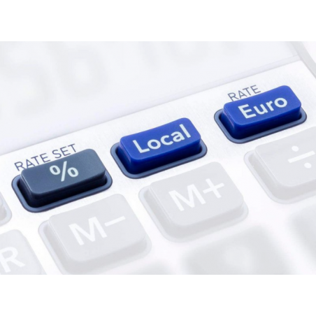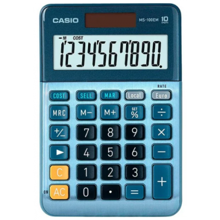 Calculadora de sobremesa marca Casio con conversión EURO, memoria independiente y subdivisión en miles.