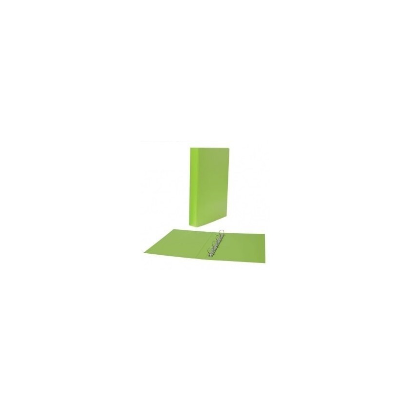 Carpeta de 4 anillas de cartón forrado en polipropileno por ambas cara, interior y exterior. Formato folio. Lomo de 35mm. Anillas de 25mm. Medidas 335x254mm