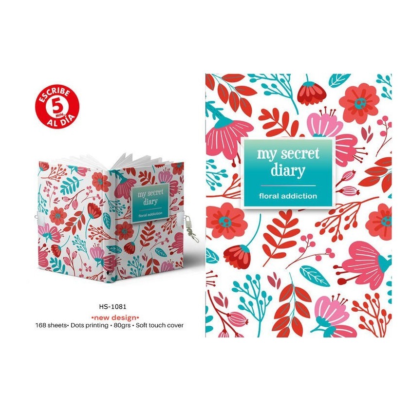 Diario con Candado "My Secret Diary – Floral Addiction" (A5, 168 hojas)