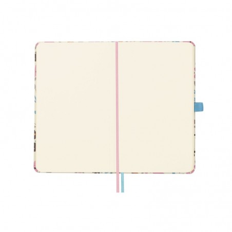 Cuaderno de tapa dura con diseño realizado en colaboración con la diseñadora e ilustradora Moniquilla. Con perfecta apertura para escribir cómodamente y bolsillo interior con fuelle de papel tejido muy resistente al uso.