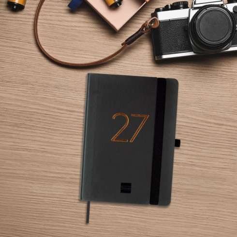 Agenda encuadernada de tapa blanda y flexible para 16 meses completos, desde septiembre de 2026 hasta diciembre de 2027. Fabricada con material de tacto suave y agradable. Diseños modernos y a la moda con detalles estampados metalizados. Perfecta para uso personal o profesional.
