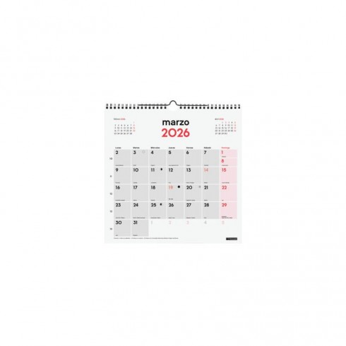 Cada mes incluye información útil: onomástica, festivos nacionales, festivos de las CCAA, días señalados, fases lunares, cambios de estación y cambio de hora. Detrás de la hoja de cada mes se puede consultar el calendario anual. Además dispone de hojas extra con el calendario anual del año siguiente, el planning anual, el listado de festivos de CCAA, de capitales de provincia y los inicios del nuevo año chino, musulmán, ortodoxo y hebreo. Ideal para el hogar o para la coordinación de equipos en la oficina.