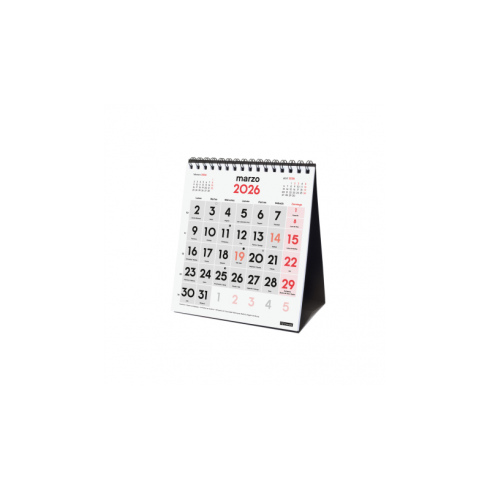 Calendario anual de sobremesa con números grandes para una visión rápida del mes. Encuadernado con espiral doble. Con mes anterior y posterior en cada página. Calendario con información útil y de interés. Ideal para el hogar, la oficina o salas de reuniones.