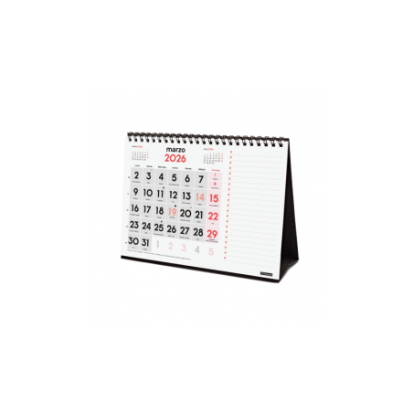 Calendario anual de sobremesa encuadernado con espiral doble. Con números grandes y apartado en cada mes para la planificación de tareas, anotación de recordatorios, etc. Contiene información útil y de interés y mes anterior y posterior en cada página. Ideal para el hogar, la oficina o salas de reuniones.